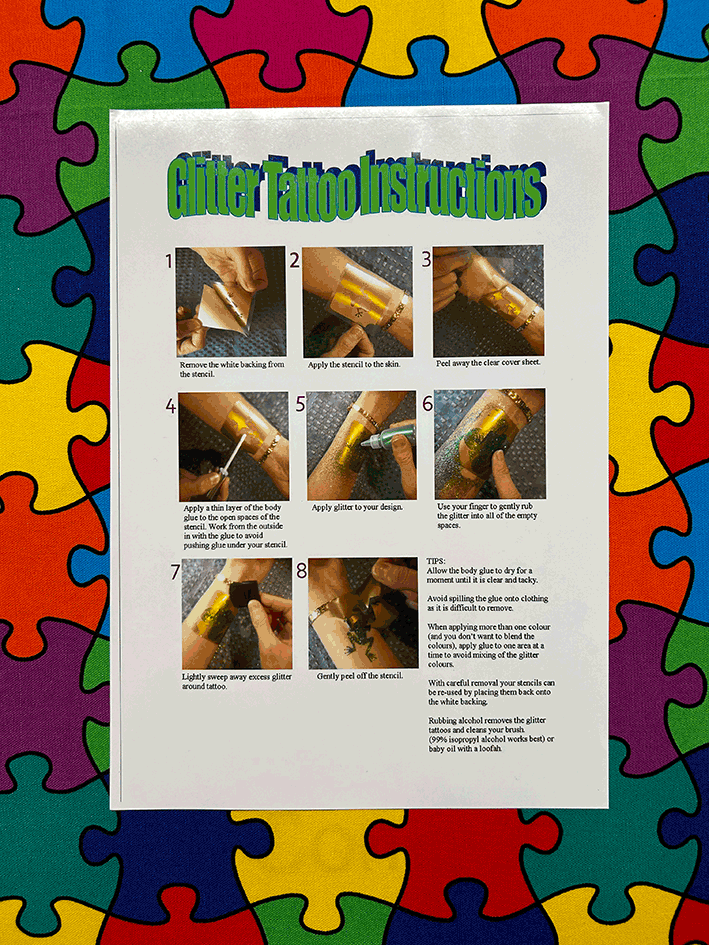 Our Glitter Tattoos Stencils are a three part stencil which includes clear application tape, high performance vinyl and a backing sheet.