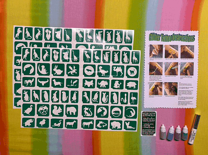 (Stencils are supplied to you in sheet form) - 10ml Vial Cosmetic Application Glue.