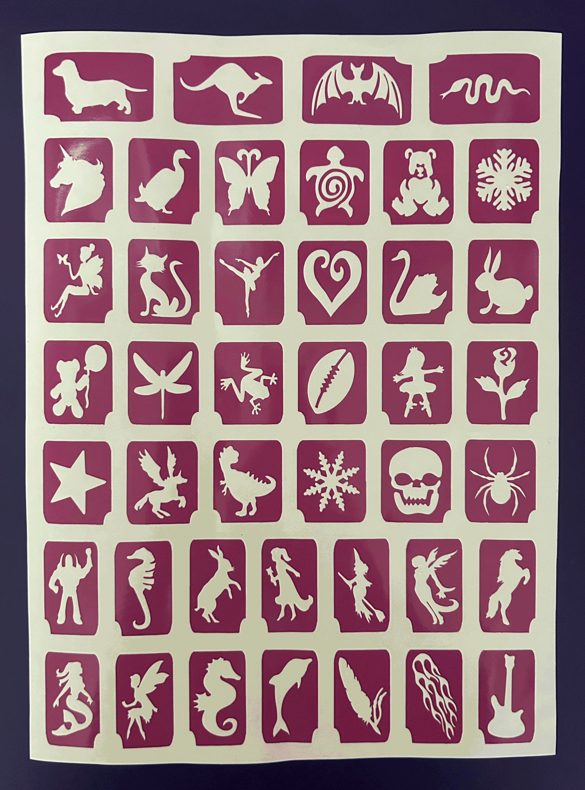 Our Glitter Tattoos Stencils are a three part stencil which includes: